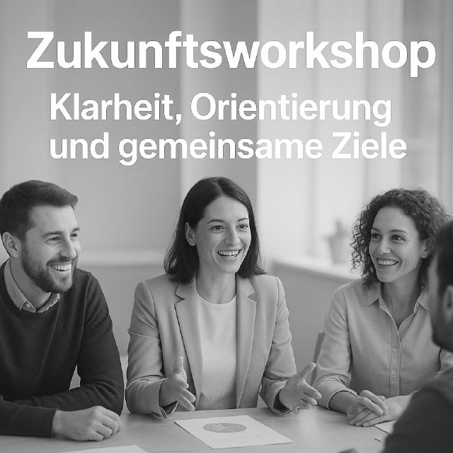 Klarheit, Orientierung und gemeinsamer Fokus sind in Unternehmen, Teams und Vereinen entscheidend - und gleichzeitig herausfordernd. Unterschiedliche Erwartungen, unausgesprochene Bedürfnisse, unklare Rollen, schwelende Konflikte oder fehlende gemeinsame Ziele können dazu führen, dass die tägliche Zusammenarbeit an Energie verliert. Ein Zukunftsworkshop bietet die Chance, innezuhalten, Bilanz zu ziehen und gemeinsam eine stimmige, motivierende und tragfähige Ausrichtung für die Zukunft zu entwickeln.